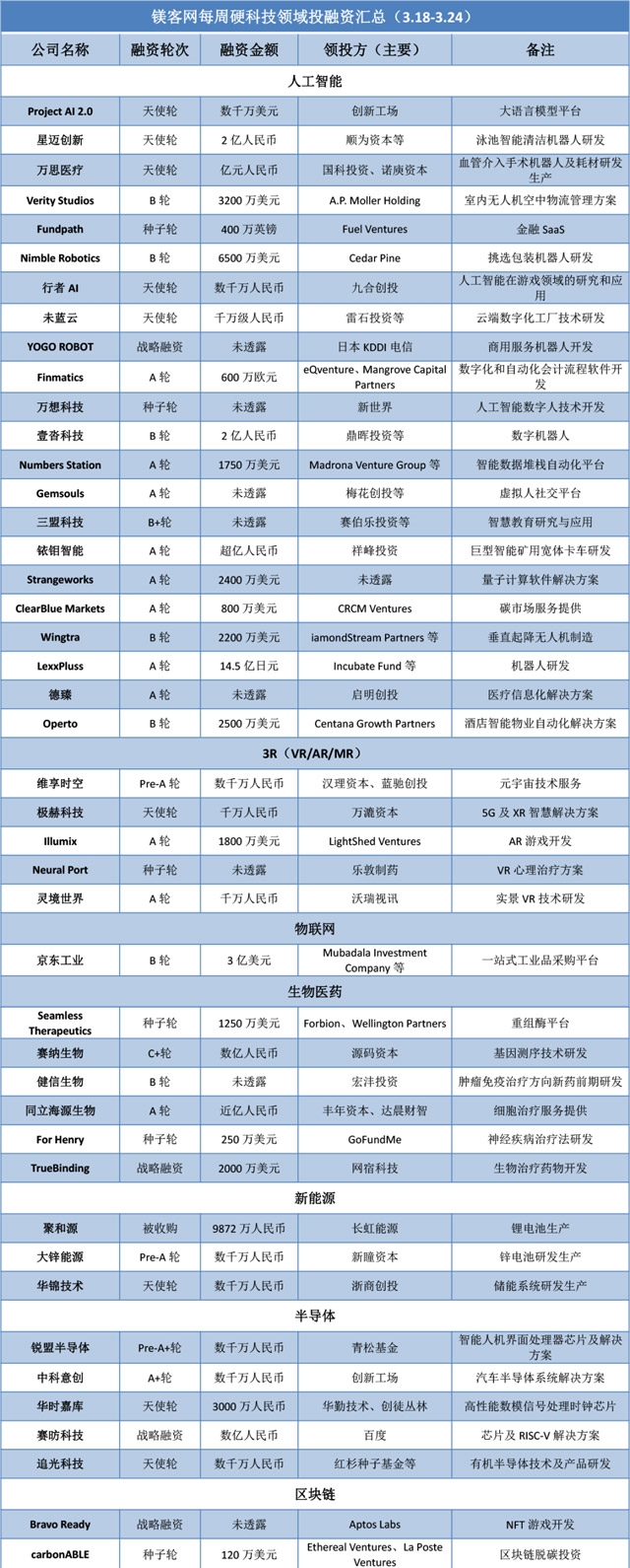 ? 原標(biāo)題:李開復(fù)親自下場(chǎng),籌組ChatGPT中文版AI新公司| 鎂客網(wǎng)每周硬科技領(lǐng)域投融資匯總(3.18-3.24)