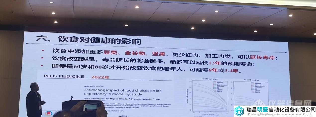 中國工程院單楊院士分享內(nèi)容的主題是:飲食與健康。飲食中添加更多豆類、全谷物、堅果,更少紅肉和加工肉類,可以延長壽命,即使是60歲和80歲才開始改變飲食的老年人,壽命也可延長8年或者3.4年。