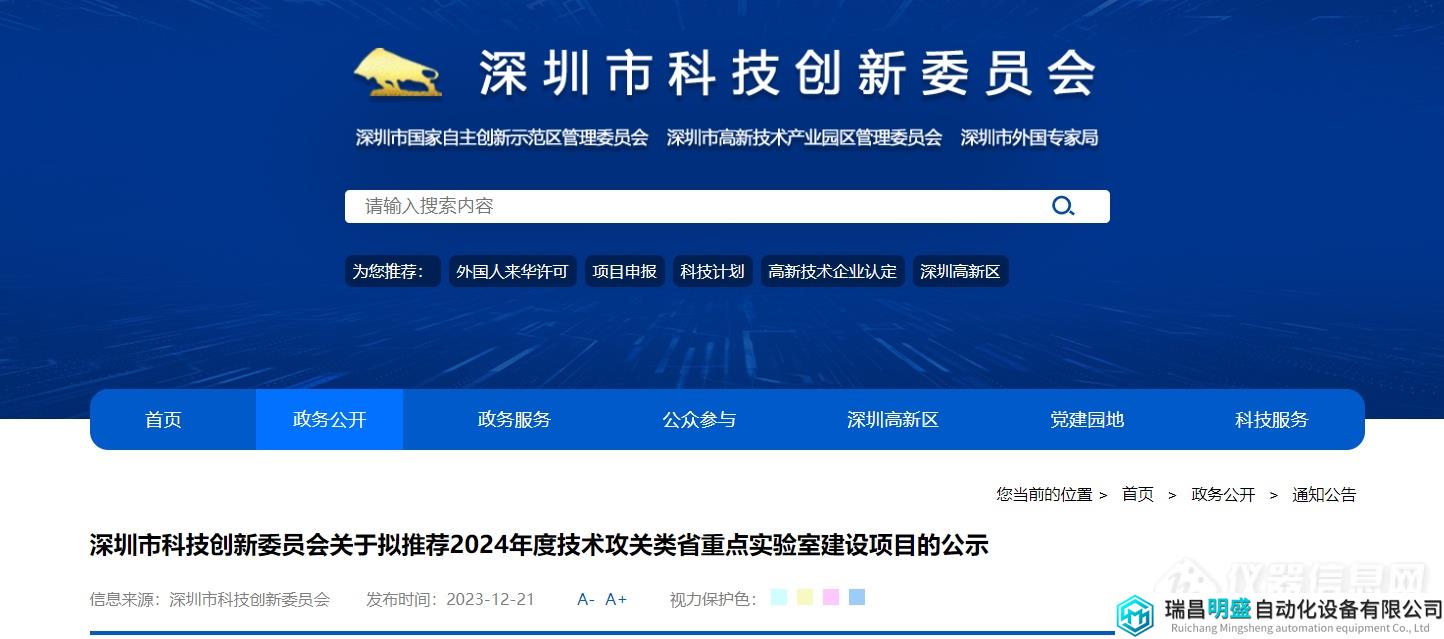 根據(jù)《廣東省科學(xué)技術(shù)廳關(guān)于組織申報(bào)2024年度平臺(tái)基地及科技基礎(chǔ)條件建設(shè)項(xiàng)目的通知》及《深圳市科技研發(fā)資金管理辦法》有關(guān)要求,深圳市科技創(chuàng)新委員會(huì)對(duì)擬向省科學(xué)技術(shù)廳推薦的2024年度技術(shù)攻關(guān)類省重點(diǎn)實(shí)驗(yàn)室建設(shè)項(xiàng)目予以公示,向社會(huì)征求意見(jiàn)。