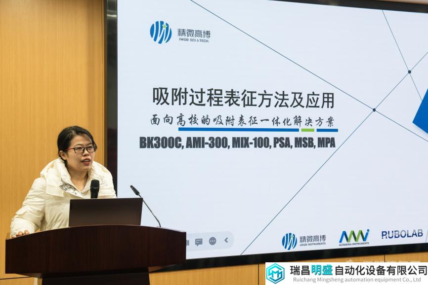 隨著捐贈儀式的圓滿結(jié)束,與會成員共同前往學(xué)術(shù)會議中心報告廳,參與了由精微高博總經(jīng)理馬志遠(yuǎn)主持的學(xué)術(shù)講座。馬志遠(yuǎn)總經(jīng)理分享了公司的概況和發(fā)展策略,資深副總經(jīng)理張福麗則深入探討了“吸附過程表征方法及應(yīng)用”,提出了面向?qū)嶒?yàn)室的吸附表征一體化解決方案,并積極回答了與會者的問題。