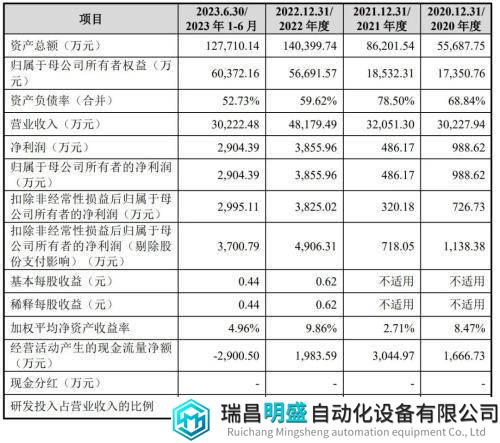 根據(jù)招股書(shū)顯示,漢邦科技2020年、2021年、2022年以及2023年上半年?duì)I收分別為3億元、3.2億元、4.8億元以及3億元;凈利分別為988.6萬(wàn)元、486萬(wàn)元、3856萬(wàn)元以及2904萬(wàn);扣非后凈利分別為1138萬(wàn)元、718萬(wàn)元、4906萬(wàn)元、3700萬(wàn)元。