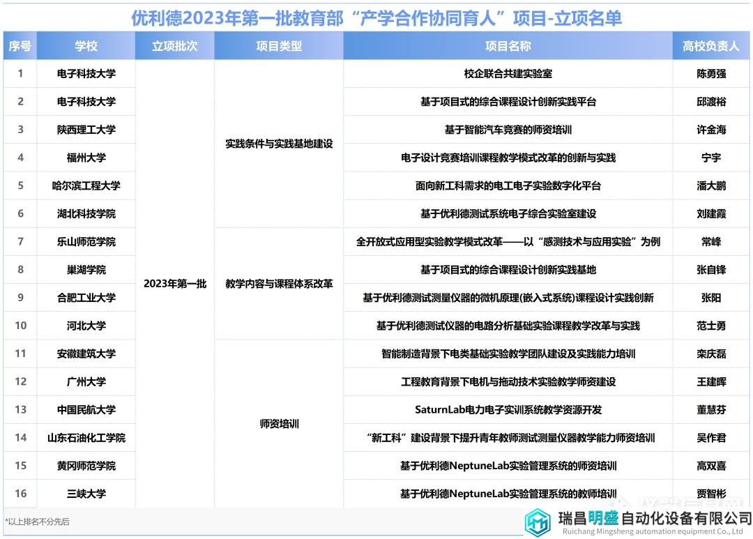 近日,教育部高等教育司發(fā)布《關(guān)于公布2023年產(chǎn)學合作協(xié)同育人項目立項名單的通知》(教高司函〔2023〕11號),優(yōu)利德科技(中國)股份有限公司16個項目獲批立項,項目內(nèi)容包括【實踐條件與實踐基地建設(shè)】、【教學內(nèi)容與課程體系改革】和【師資培訓(xùn)】。