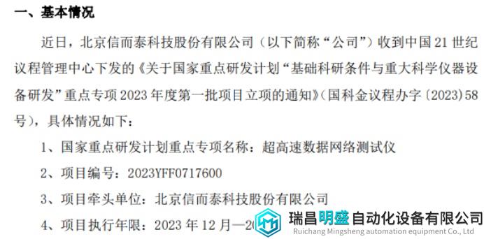 超高速數(shù)據(jù)網(wǎng)絡(luò)測試儀(項(xiàng)目編號:2023YFF0717600)項(xiàng)目由北京信而泰科技股份有限公司牽頭申報(bào)。該項(xiàng)目主要針對大型數(shù)據(jù)中心、高速骨干網(wǎng)絡(luò)和云計(jì)算的高端路由器及高端三層交換機(jī)等通信設(shè)備的測試需求,突破800Gbs大規(guī)模流量仿真、大規(guī)模流量統(tǒng)計(jì)、高精度時鐘同步、全線速捕獲和多協(xié)議仿真等關(guān)鍵技術(shù),開發(fā)具有自主知識產(chǎn)權(quán)、質(zhì)量穩(wěn)定可靠、核心部件國產(chǎn)化的超高速數(shù)據(jù)網(wǎng)絡(luò)測試儀產(chǎn)品,開發(fā)相關(guān)軟件及數(shù)據(jù)庫,開展工程化開發(fā)、應(yīng)用示范和產(chǎn)業(yè)化推廣,實(shí)現(xiàn)在數(shù)據(jù)中心、高速骨干網(wǎng)絡(luò)和云計(jì)算等領(lǐng)域的應(yīng)用。
