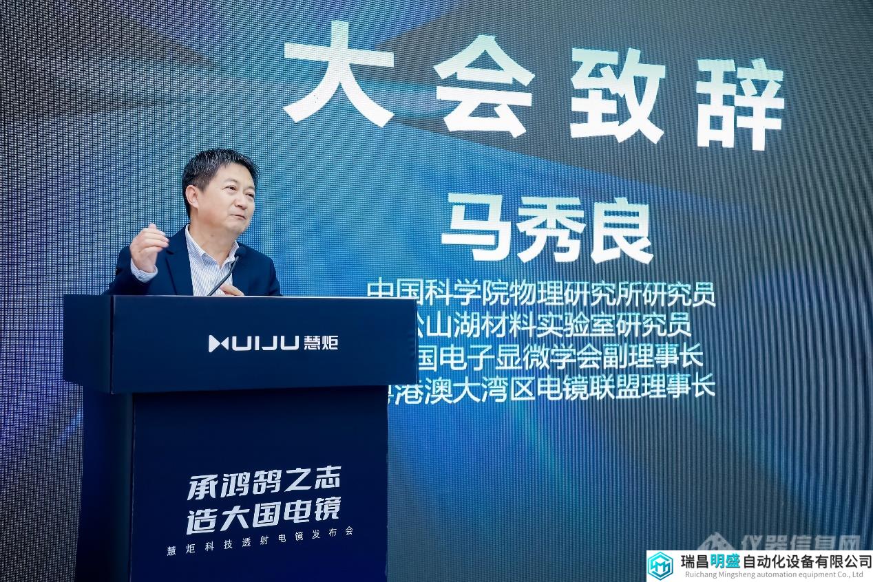 中國(guó)科學(xué)院物理研究所/松山湖材料實(shí)驗(yàn)室研究員、中國(guó)電子顯微鏡學(xué)會(huì)副理事長(zhǎng)、粵港澳大灣區(qū)電鏡聯(lián)盟理事長(zhǎng)馬秀良致辭