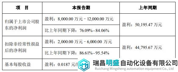 據(jù)預(yù)告顯示,歸屬于公司股東的凈利潤預(yù)計(jì)盈利8000~12000萬元,比上年同期下降76.09% ~ 84.06%。扣除非經(jīng)常性損益后的凈利潤預(yù)計(jì)盈利2000~6000萬元,比上年同期下降86.61% ~95.54%。