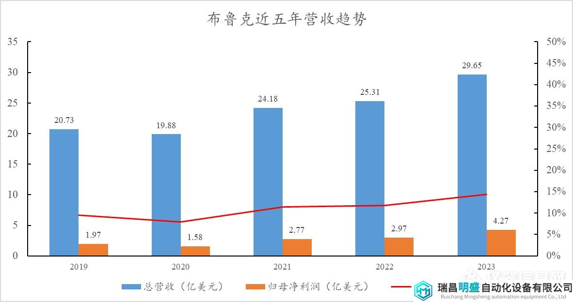 2023年全年,布魯克營(yíng)收29.6億美元,同比增長(zhǎng)17.1%;歸母公司凈利潤(rùn)為4.272億美元,凈利潤(rùn)率為14.4%,較2022年2.966億增長(zhǎng)44%??偁I(yíng)收高于華爾街普遍預(yù)期的 29.2 億美元。