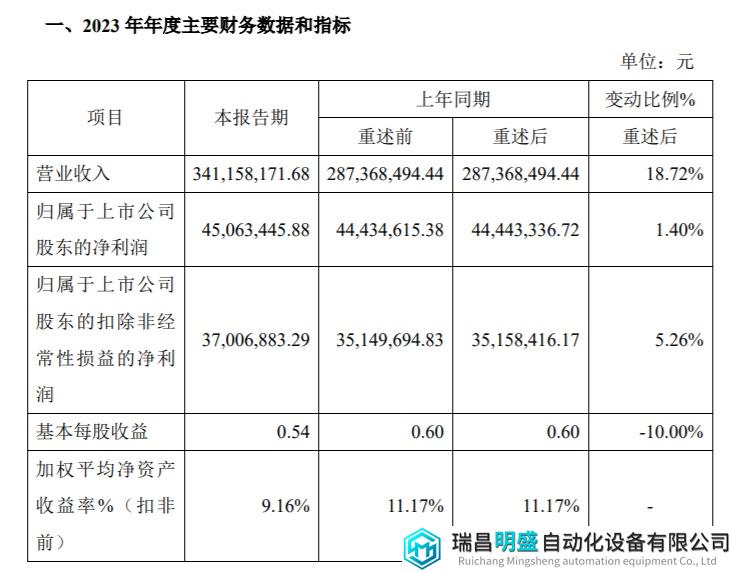 海能未來技術(shù)集團(tuán)股份有限公司(證券代碼:430476)發(fā)布2023年年度業(yè)績(jī)快報(bào),公告顯示,2023年度營業(yè)收入341,158,171.68元,比上年同期增長18.72%;歸屬于上市公司股東的凈利潤45,063,445.88元,比上年同期增長1.40%;歸屬于上市公司股東的扣除非經(jīng)常性損益的凈利潤 3700.69 萬元,較上年同期增長 5.26%。