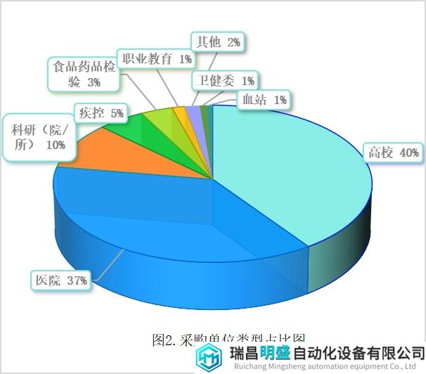 從采購單位類型分布情況來看,高校的采購量占比最大,為40%。許多醫(yī)藥大學和綜合類高校中的生物及醫(yī)藥專業(yè)實驗室都需要采購細胞計數(shù)儀。醫(yī)院的采購量占比第二,為37%,精準智能的細胞計數(shù)儀對他們來說必不可少??蒲校ㄔ?所)的采購量占比第三,為10%。疾病預防控制中心的采購量占比第四,為5%。食品藥品檢驗中心的采購量占比第五,為3%。此外,還有職業(yè)教育、衛(wèi)健委、血站等其他單位占少量采購份額。因此,高校、醫(yī)院和科研(院/所)是細胞計數(shù)儀設備更新采購的主要單位。