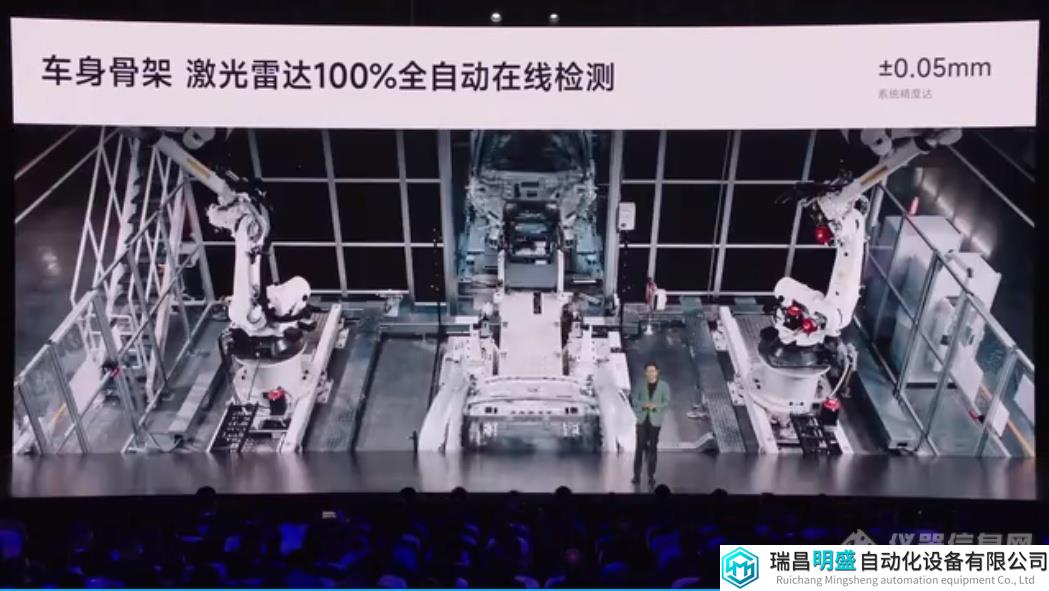 雷軍稱,小米汽車工廠采用全方位自動(dòng)化檢測,給品質(zhì)增加了一道“雙保險(xiǎn)”。整車外觀實(shí)現(xiàn)紫外光100%全自動(dòng)在線檢測,檢測精度0.05mm;車身骨架實(shí)現(xiàn)激光雷達(dá)100%全自動(dòng)在線檢測,精度0.05mm;一體壓鑄件采用X光AI檢測,檢測準(zhǔn)確性達(dá)99.9%,檢測效率提升20倍以上。