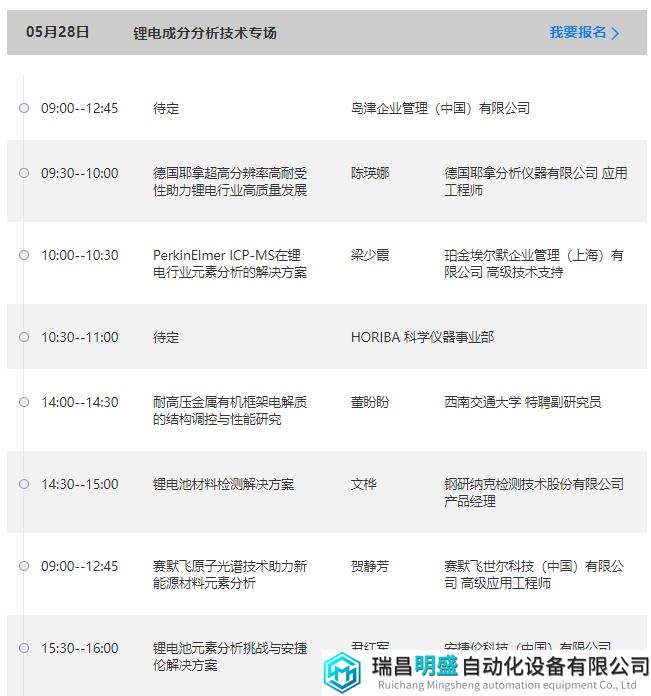 5月28日 全天 | 鋰電成分分析技術(shù)專場(chǎng) |