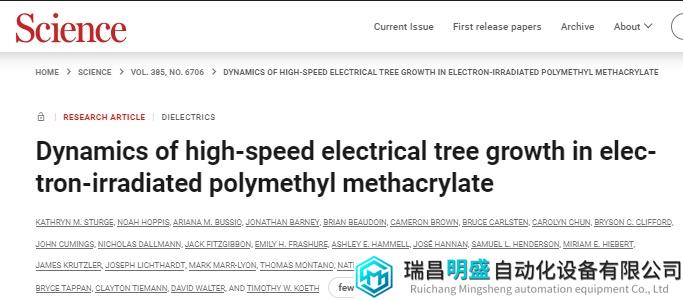 文獻信息:Kathryn M. Sturge et al. , Dynamics of high-speed electrical tree growth in electron-irradiated polymethyl methacrylate.Science 385,300-304 (2024).https://www.science.org/doi/10.1126/science.ado5943
